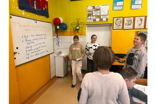 Ostatnią lekcją były zajęcia z wychowawcą. Był to czas podsumowania całego projektu edukacyjnego. Odwiedziła nas ekipa szkolnej telewizji, która nakręciła z nami wywiad. Odpowiadaliśmy na pytania związane z naszą całotygodniową pracą. Efektem będzie film, który przygotuje STV30. Na efekty czekamy z niecierpliwością.