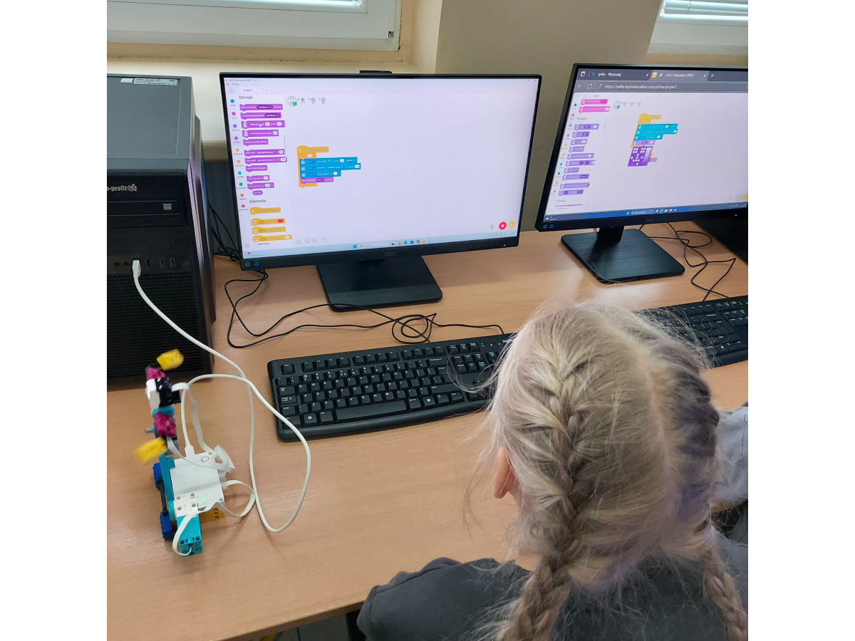 Podczas zajęć uczniowie pracują z zestawami robotycznymi oraz środowiskami do programowania wizualnego. Budują własne konstrukcje, testują ich działanie i uczą się tworzyć proste algorytmy sterujące robotami. Dzięki temu rozwijają logiczne myślenie, kreatywność, umiejętność rozwiązywania problemów oraz współpracy w grupie.