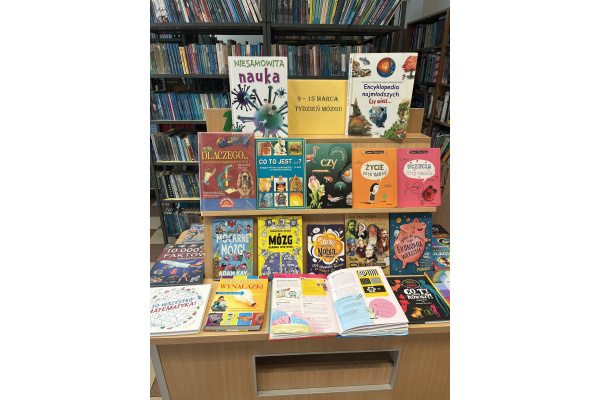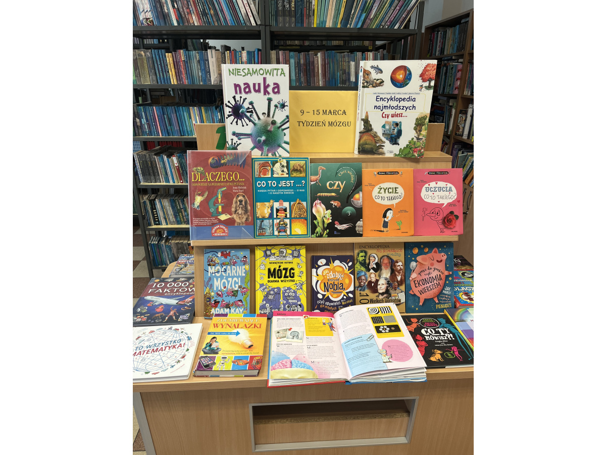 a) w bibliotece szkolnej odbyła się wystawa książek pt. "9-13 marca - Tydzień Mózgu”. Wystawa miała na celu zwrócenie uwagi uczniów na funkcjonowanie mózgu i na rozwój funkcji poznawczych a także na pobudzenie mózgu do rozwoju poprzez udostępnienie treści popularnonaukowych z najważniejszych dziedzin wiedzy.