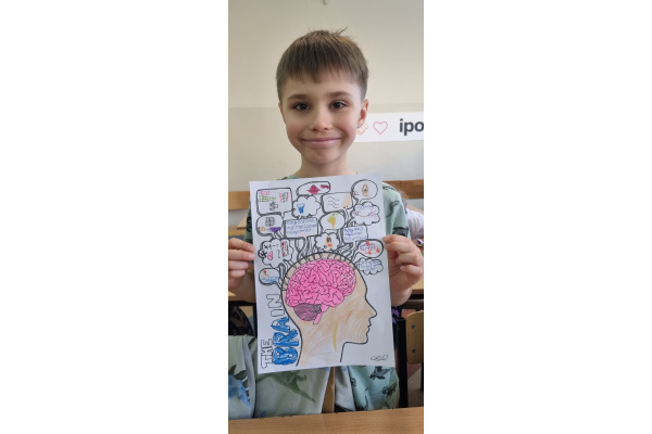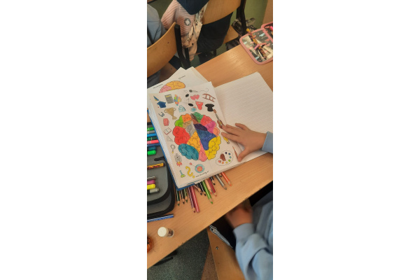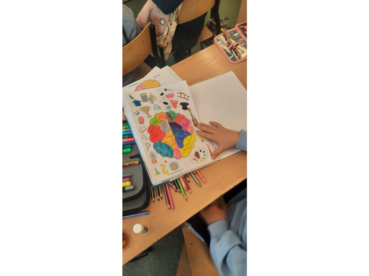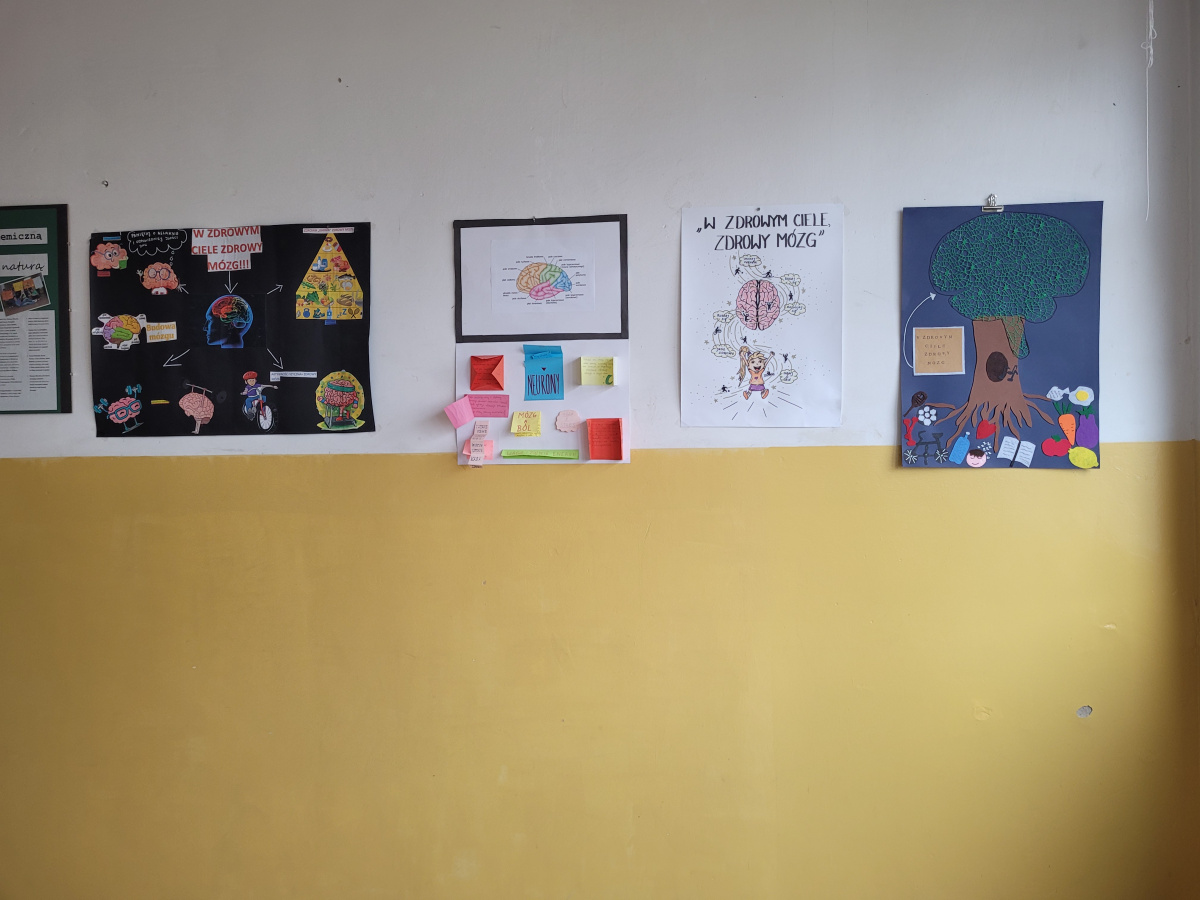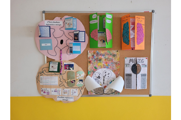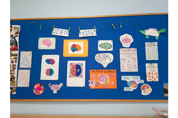 d) w klasach starszych – odbył się konkurs plastyczny pt.: „W zdrowym ciele zdrowy mózg” dla klas 4 oraz konkurs na Lapbooka pt. „(Nie) zbadane tajemnice mózgu” dla klas 5;